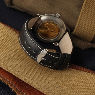 Cette montre Zeppelin a un boîtier Inox 40 mm en diamètre et est équipée d'un bracelet cuir. Le boîtier contient un mouvement Miyota et la montre est dotée d'un cristal K1 Minéral..