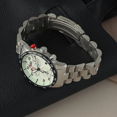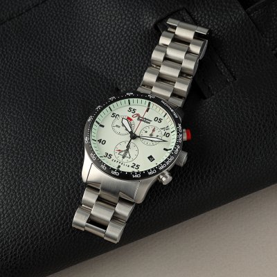 Cette montre Zeppelin a un boîtier Inox 43 mm en diamètre et est équipée d'un bracelet Inox. Le boîtier contient un mouvement ETA et la montre est dotée d'un cristal K1 Minéral..
