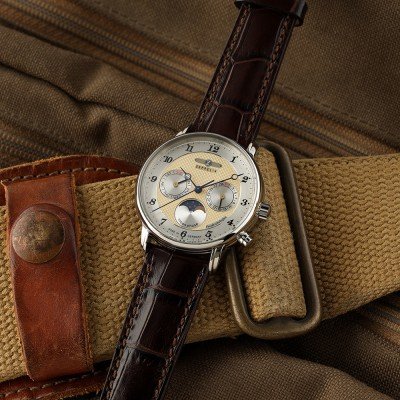 Cette montre Zeppelin a un boîtier Inox 36 mm en diamètre et est équipée d'un bracelet cuir. Le boîtier contient un mouvement Ronda et la montre est dotée d'un cristal K1 Minéral..