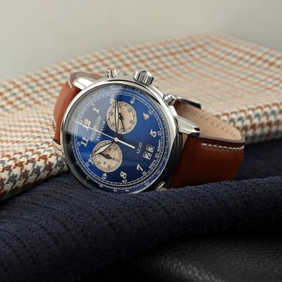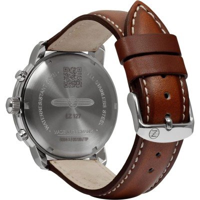 Cette montre Zeppelin a un boîtier Inox 40 mm en diamètre et est équipée d'un bracelet cuir. Le boîtier contient un mouvement Ronda et la montre est dotée d'un cristal K1 Minéral..