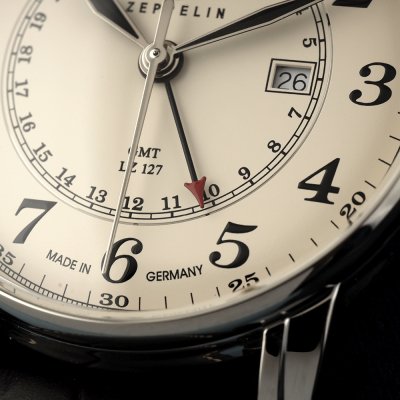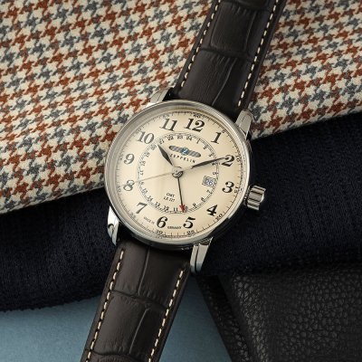 Cette montre Zeppelin a un boîtier Inox 42 mm en diamètre et est équipée d'un bracelet cuir. Le boîtier contient un mouvement Ronda et la montre est dotée d'un cristal K1 Minéral..