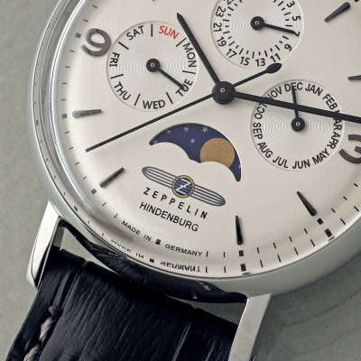 Cette montre Zeppelin a un boîtier Inox 36 mm en diamètre et est équipée d'un bracelet cuir. Le boîtier contient un mouvement Miyota et la montre est dotée d'un cristal K1 Minéral..