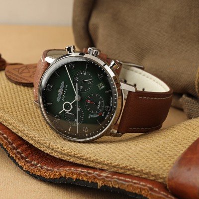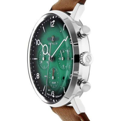 Cette montre Zeppelin a un boîtier Inox 40 mm en diamètre et est équipée d'un bracelet Cuir végétalien. Le boîtier contient un mouvement Seiko et la montre est dotée d'un cristal K1 Minéral..