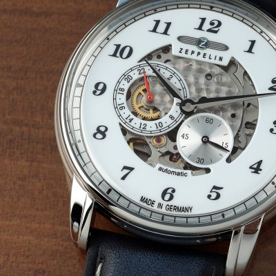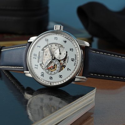 Cette montre Zeppelin a un boîtier Inox 42 mm en diamètre et est équipée d'un bracelet cuir. Le boîtier contient un mouvement Miyota et la montre est dotée d'un cristal K1 Minéral..